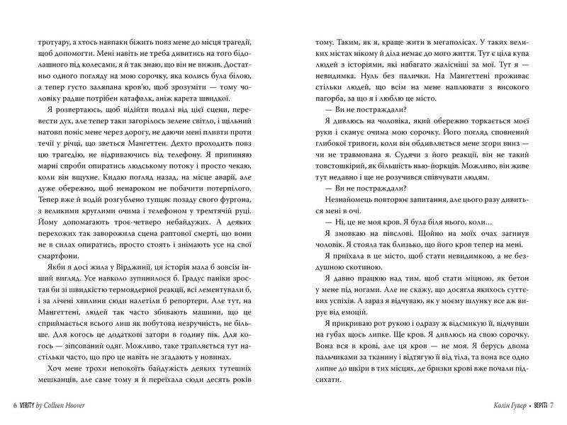 Здається, Веріті не планувала, що хтось її прочитає… Рукопис рясніє відвертими подробицями життя подружжя і розповідає, що насправді трапилося того дня, коли померла їхня дочка.Лоувен вагається, чи показувати автобіографію Джеремі, бо розуміє — це знищить його. То хто ж така Веріті — геніальна письменниця і жертва фатальних обставин чи божевільна маніпуляторка і злочинниця?