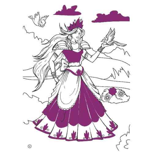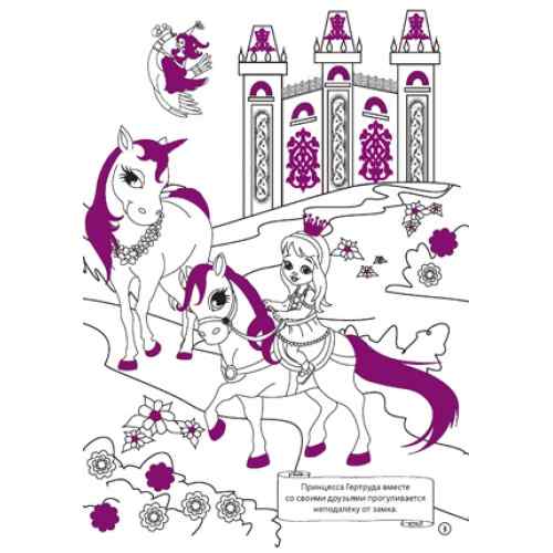 Brilliant Pictures Принцессы Елвік. Серія книг з блискучими розмальовками. Вони дарують дитині чарівну казку, яку він розфарбує сам. Загадковий блиск на кожній сторінці книги зачарує дитини і надихне його уяву. Вона придумає свою історію про світ вишуканих принцес, чарівних конячок і казкових героїв.