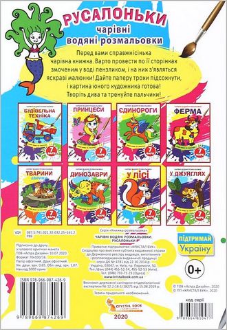 Перед вами справжнісінька чарівна книжка. Варто провести по її сторінках змоченим у воді пензликом, і на них з’являться яскраві малюнки! Дайте паперу трохи підсохнути, і картина юного художника готова!