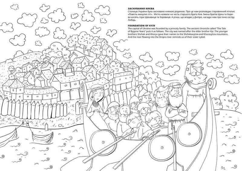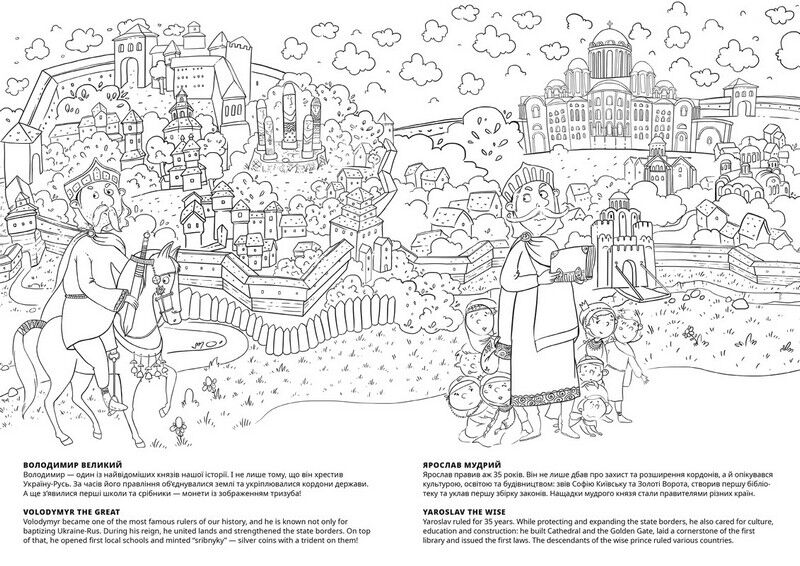 Книжка-розмальовка містить не лише сторінки для малювання, а й історичні факти, викладені цікаво й дотепно.