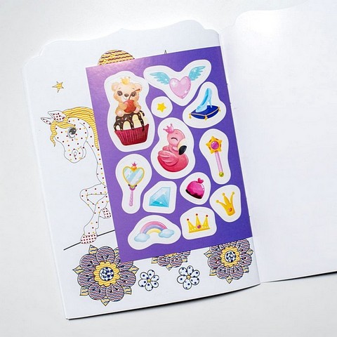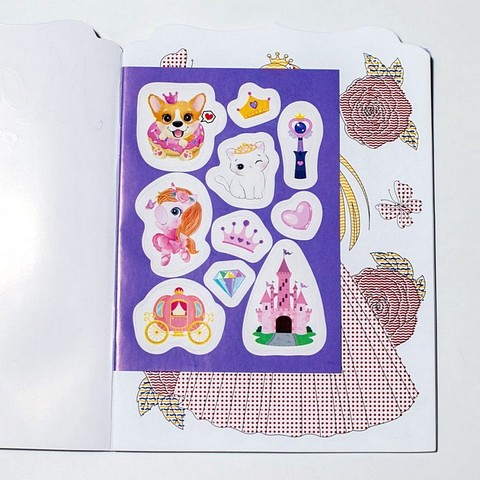 Книжечка-розмальовка з яскравими наліпками для дівчаток. Тематика її це казкові принцеси, принци, білий кінь та все те, що полюбляють маленькі мрійниці. Розмальовуємо малюнки без фарб та олівців, лише звичайною водою та пензликом! Справиться кожен. Малюнків у наборі 8.