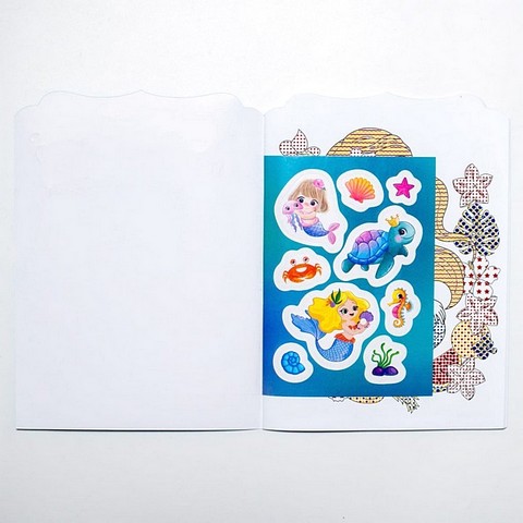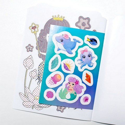 Книжечка-розмальовка з яскравими наліпками для дівчаток. Тематика її про підводний світ і чарівних русалоньок.
