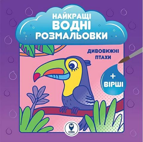 Серія «Найкращі водні розмальовки» перетворить малечу у справжнього чарівника! Розфарбувати малюнки звичайною водою? Це дуже просто! Потрібно лише обережно нанести пензликом воду на сторінку і зображення стануть кольоровими. Цупкий папір не розмокає при малюванні. Кожен малюнок зроблений з спеціальним відступом, аби сторінку можна було відрізати. Так малеча не переживатиме, що наступні сторінки намокнуть або склеяться. А ще можна познайомитися з героями розмальовки, прочитавши вірші. Водні розмальовки — це цікаве заняття, яким малеча може займатися самостійно!