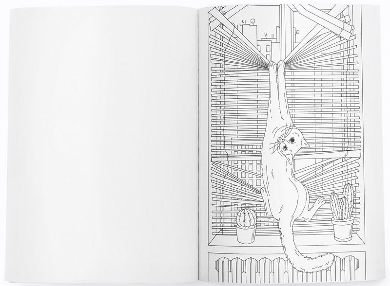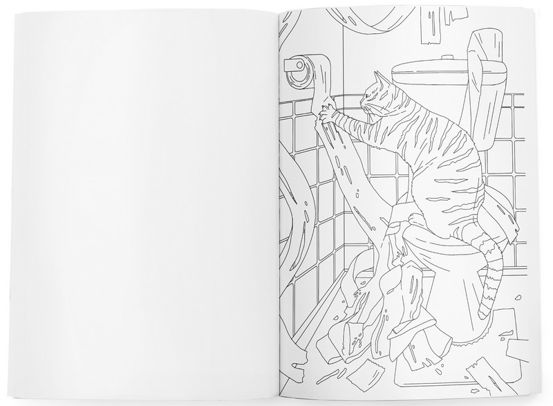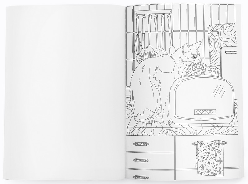 Розмальовка «Пригоди пухнастих бешкетників» — 16 ілюстрацій про те, чим наповнені неймовірно завантажені котячі будні. Розмальовуйте та шукайте знайомі сюжети.