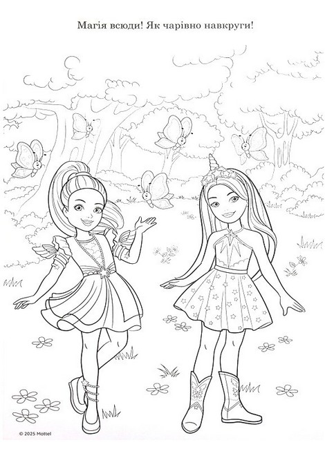 Приєднуйся до Малібу та Бруклін! Тебе чекають пригоди разом з Барбі та їхніми друзями і казковими створіннями. Розфарбуй магічний світ у яскраві кольори.