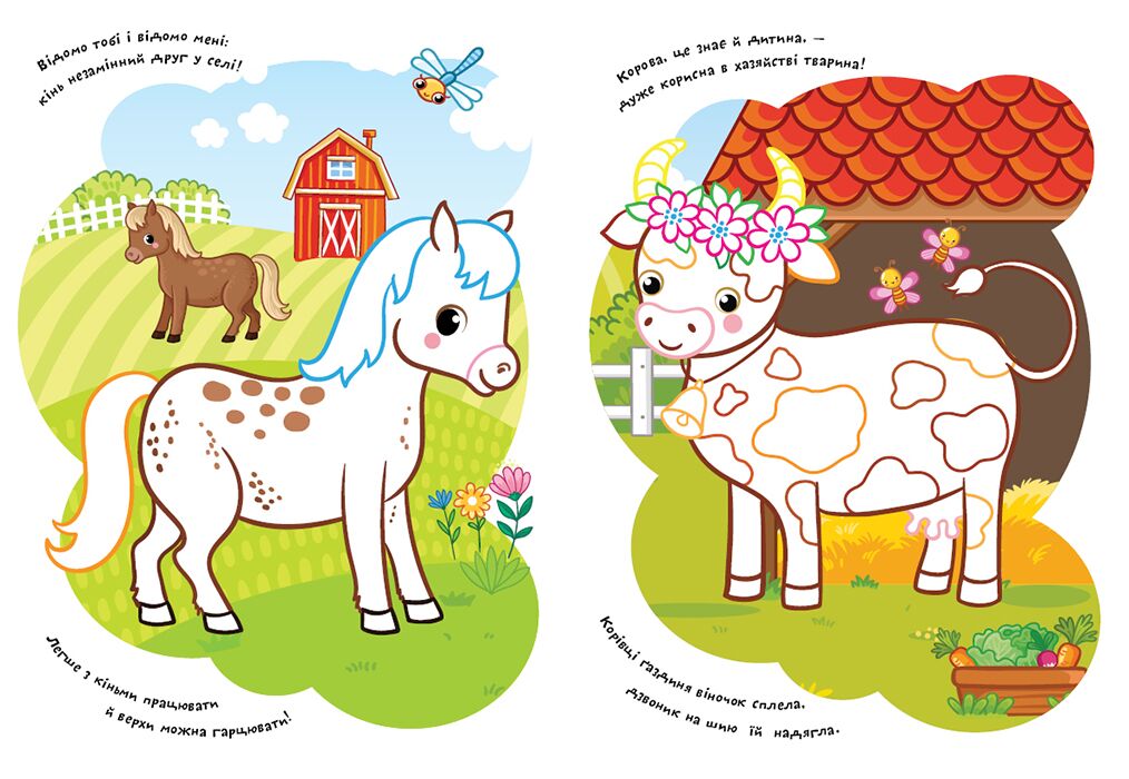 Книжки-розмальовки цієї серії містять чудові малюнки з кольоровим контуром, що є підказкою для дитини під час вибору фарб. Гарні ілюстрації з перших хвилин привертають увагу малюка і дарують йому позитивні емоції та гарний настрій! У процесі розфарбовування малеча навчиться розпізнавати кольори. Також дитині пропонуються цікаві завдання і віршики, що сприяють її розвиткові. • Розфарбовуй зображення в яскраві кольори. • Вигадуй цікаву історію про персонажів! • Весело і з користю!