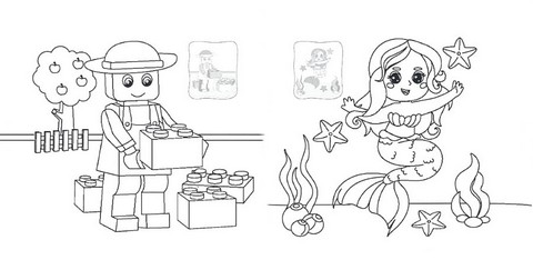 До кожного контурного малюнка є кольорова наліпка, яка допоможе вибрати потрібні кольори.