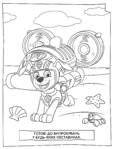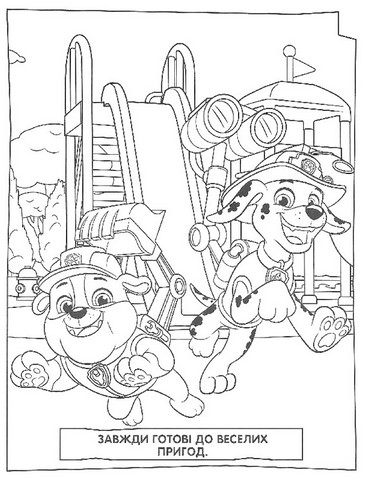 Вирушай у захопливі пригоди разом із веселою командою щенячого патруля! Розмальовуй та придумуй цікаві пригоди для цуценят!