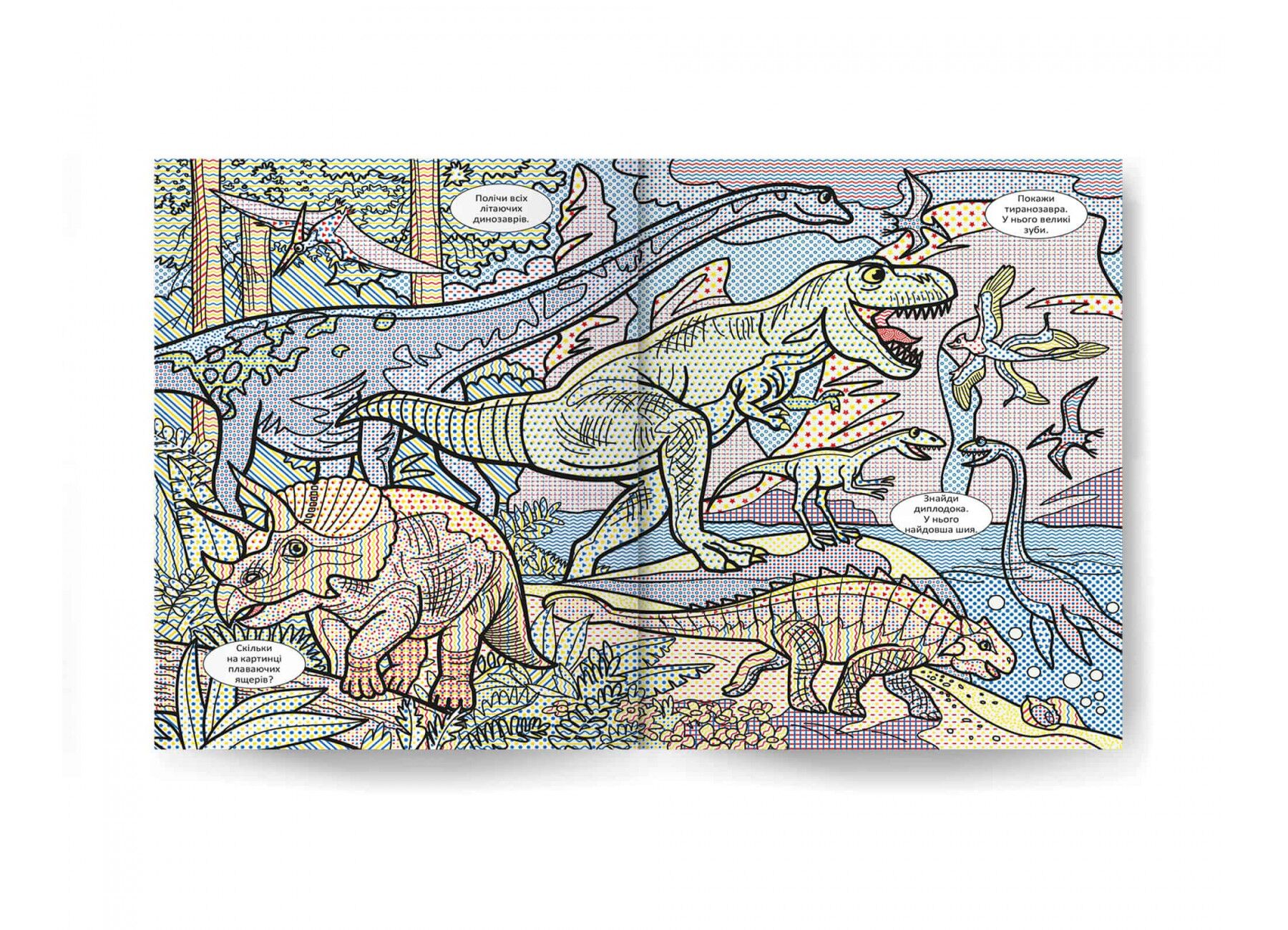 Ми поєднали улюблені всіма дітьми водяні розмальовки з віммельбухом, і в нас вийшла дивовижна книжка. Вона допоможе розвинути уяву й уважність, поліпшити дрібну моторику та сформувати навички малювання. Нехай юний художник змочить пензлик у воді й проведе ним по сторінці, намагаючись не виходити за контури зображення, — картинка сама забарвиться в яскраві кольори. Запропонуйте дитині скласти оповідання за цим малюнком, а потім виконати цікаві завдання, розміщені в книжці.