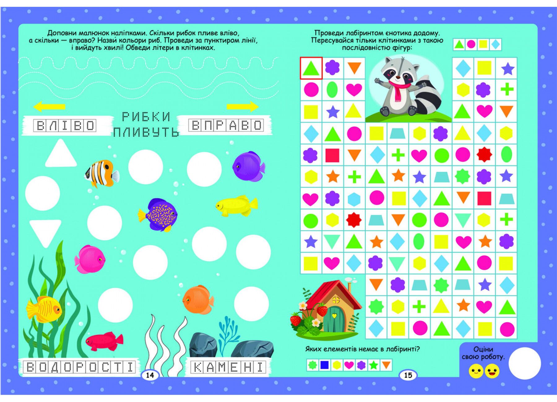 Запропоновані нами завдання більше нагадують ігри, що так подобаються маленьким хлопчикам і дівчаткам.Тому виконувати їх буде зовсім не нудно. До того ж ми постаралися урізноманітнити вправи, щоб діти могли не тільки малювати та приклеювати картинки, а й обводити графічні елементи, удосконалюючи каліграфію, а також рахувати, запам’ятовувати літери та складати з них слова.