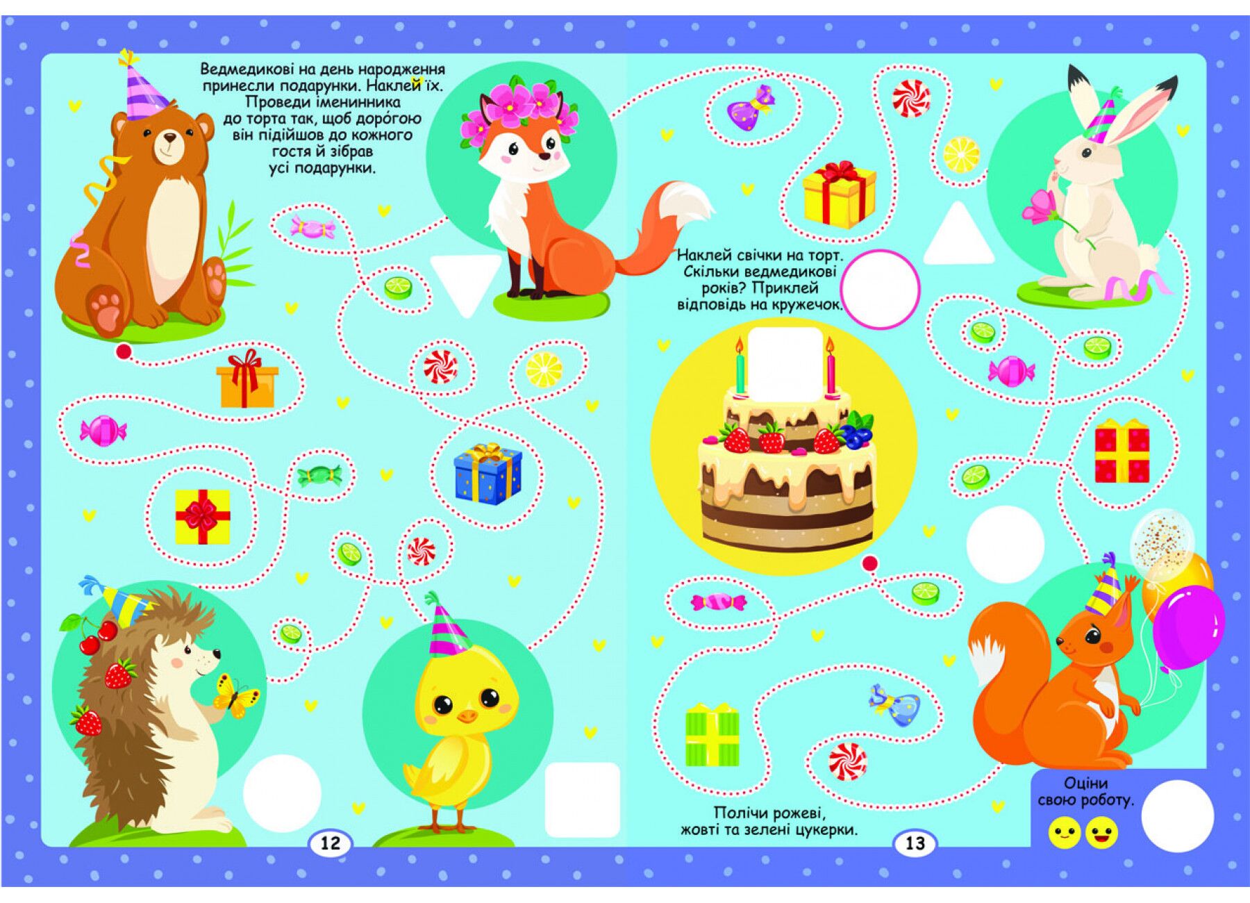 Запропоновані нами завдання більше нагадують ігри, що так подобаються маленьким хлопчикам і дівчаткам.Тому виконувати їх буде зовсім не нудно. До того ж ми постаралися урізноманітнити вправи, щоб діти могли не тільки малювати та приклеювати картинки, а й обводити графічні елементи, удосконалюючи каліграфію, а також рахувати, запам’ятовувати літери та складати з них слова.