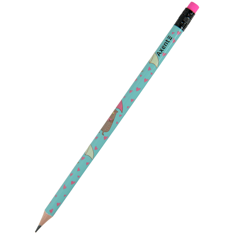 Олівець графітний Axent 9009-A, з гумкою, підходить для письма, креслення та малювання. Заточений. Міцний круглий корпус з високоякісної деревини захищає грифель від ударів і забезпечує легкість заточування. Твердість HB, глянсове кольорове покриття. Довжина 189 мм, діаметр 7 мм. Повноколірні принти на олівці - це маленька приємна деталь, здатна внести радісну і творчу нотку в щоденний ритм роботи або навчання.