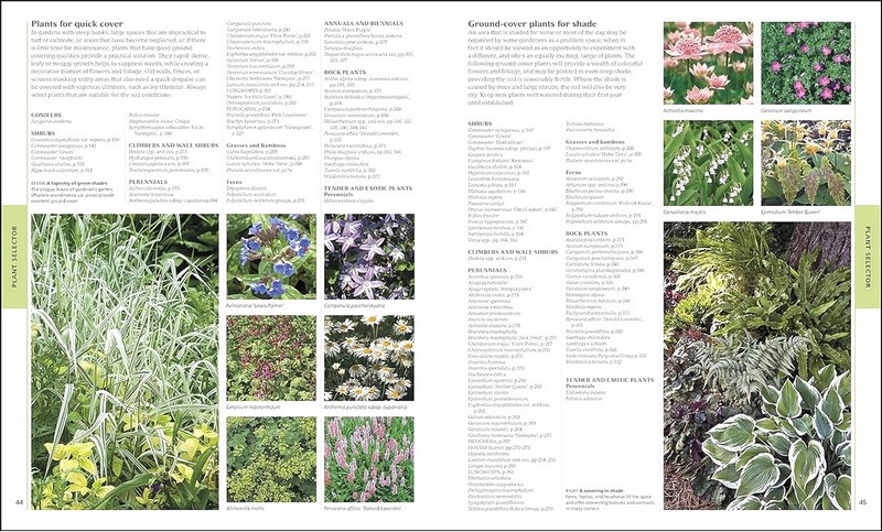 - A photographic catalogue of 4000 plants and flowers grouped by type, size, then colour, allowing readers to browse and find the best plants for their garden
