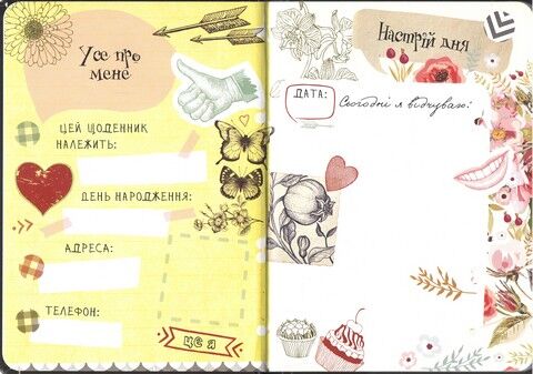 Smash Book - це простір для твоєї творчості, у якому немає ніяких рамок таобмежень. Він для тебе і про тебе. Ти можеш розповісти про те, як пройшовтвій день, записати або прочитати цитати відомих людей, занотувати своїплани на майбутнє, поділитись своїм настроєм. Щоденник допоможе тобі організувати вечірку для друзів та зібрати все необхідне для подорожі, розкаже секрети здорового харчування та організує твій вільний час. Кожна сторінка в ньому неповторна, як і ти.