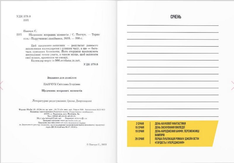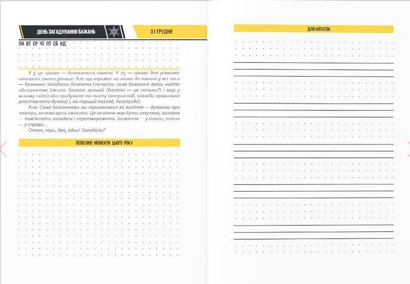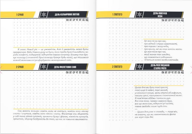 Його сторінки пропонують несподівані точки уваги, а також місце, щоб записати свої плани, враження чи емоції.