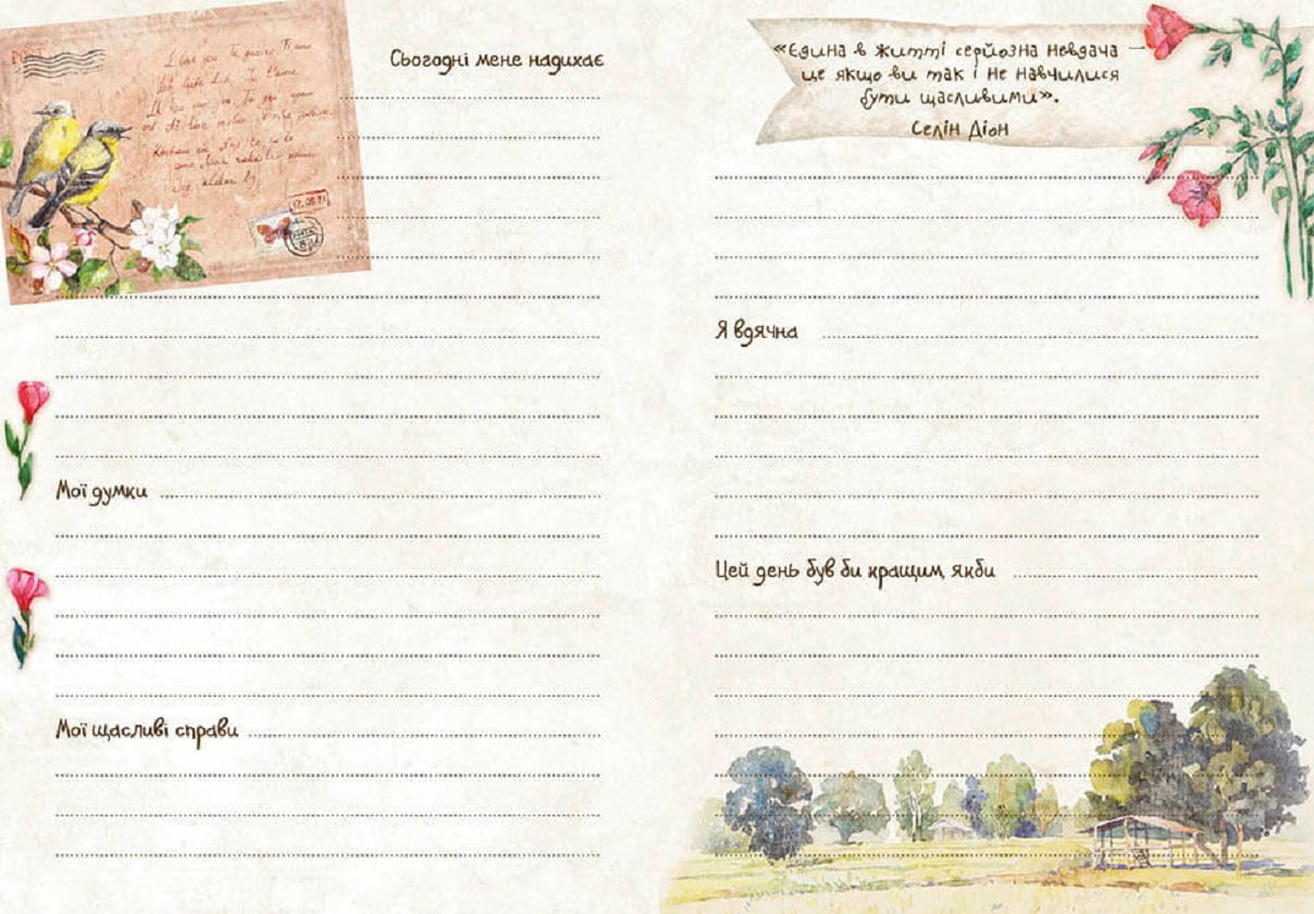 Цей щоденник створено саме для тебе! Стильний, ніжний, з романтичними вінтажними ілюстраціями він надихає мріяти, планувати свій незабутній відпочинок, успішну кар’єру та нові звершення… А статті й висловлювання великих мудреців на сторінках блокнота можуть стати дороговказом на шляху до обраної мети. Щоденник — найкращий вибір для тих, хто шукає оригінальний подарунок.