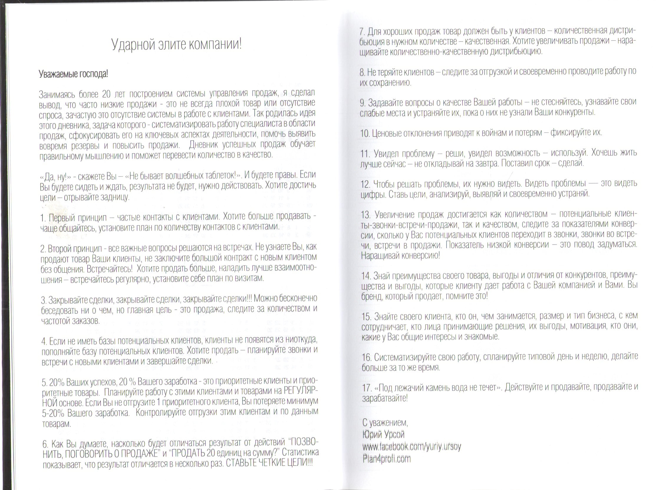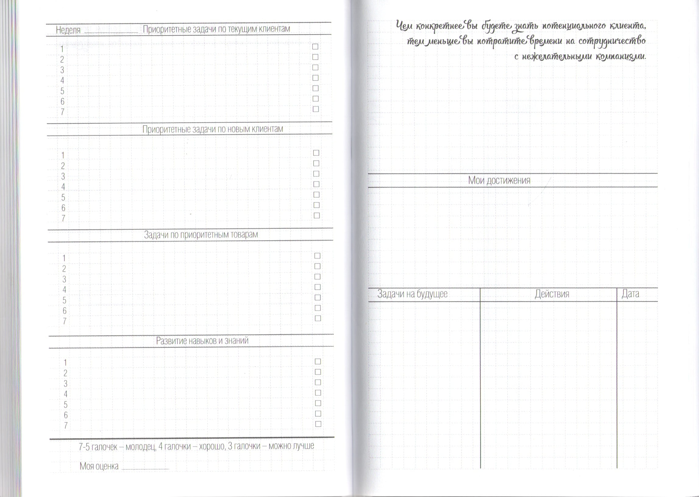 Он поможет не только спланировать свой день, расставить приоритеты и выявить проблемы, но предоставит важные советы относительно роста продаж, работы с клиентами и самосовершенствования.