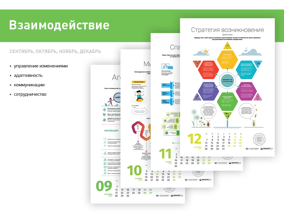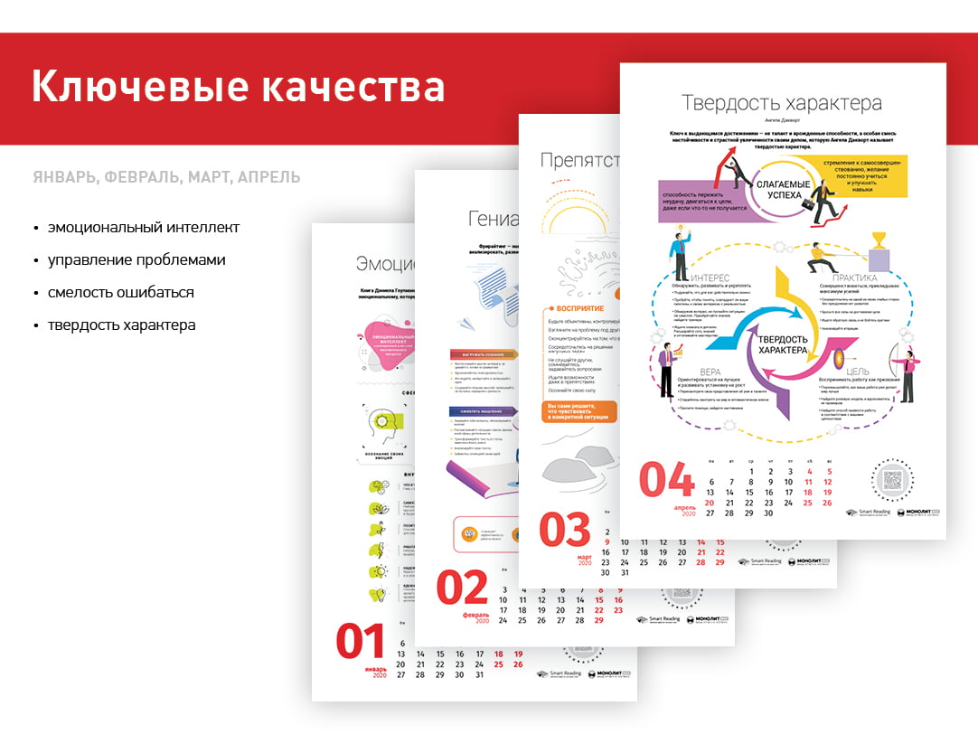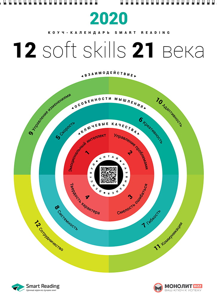Уникальный коуч-календарь из 12 простых и понятных инфографик. В течение целого года будет прокачивать самые востребованные «мягкие» навыки, необходимые для достижения успеха в 21 веке
