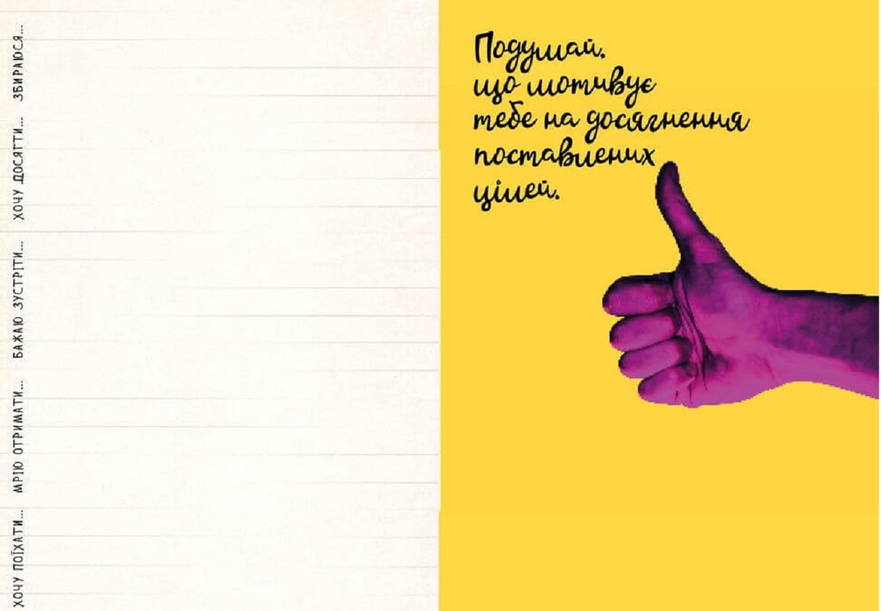 Що робить нас щасливими? — блокнот допоможе усвідомити свої бажання, сформулювати і зробити колажі-візуалізації своїх мрій. Він надихає мріяти і крокувати вперед до здійснення бажань.
