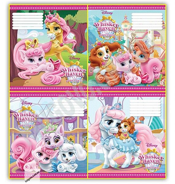 Комплект 25 зошитів 12 аркушів Клітинка Серія Palace Pets для дівчат, скоба, 4 обкладинки в комплекті. Зошити для учнів початкових класів. Термін придатності необмежений. Обкладинка кольорова.