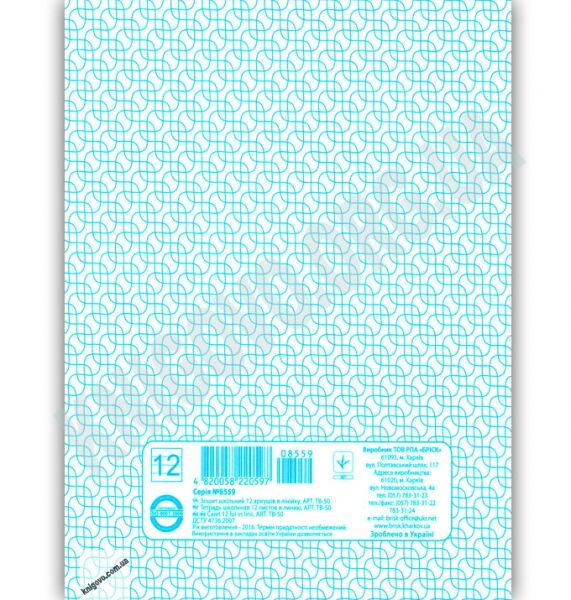 25 зошитів 12 аркушів Лінійка Арт ТВ-50 Вид: Бріск