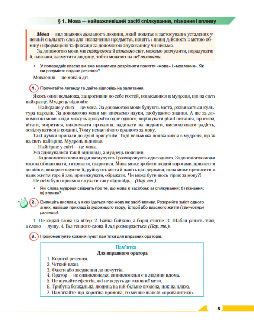 Методичний апарат: включає різнорівневі завдання, що відповідають віковим особливостям восьмикласників і восьмикласниць, сприяють розвитку навичок критичного мислення, аналізу тексту, творчого та усного мовлення.
