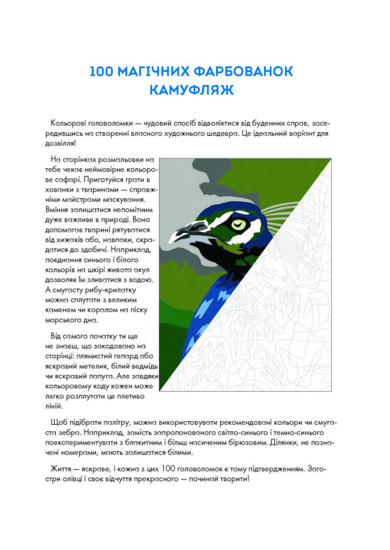 Кольорові головоломки — чудовий спосіб відволіктися від буденних справ, зосередившись на створенні власного художнього шедевра. Це ідеальний варіант для дозвілля! На сторінках розмальовки на тебе чекає неймовірне кольорове сафарі. Приготуйся грати в хованки з тваринами — справжніми майстрами маскування.