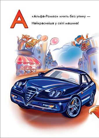 .Абетка у віршах буде для вашого малюка першою читанкою, адже з нею він вивчить усі літери абетки — від А до Я. На кожній сторінці цієї книжки дитина ознайомиться з однією літерою, побачить зображення машини однієї з відомих моделей і багато предметів і персонажів, назви яких починаються з цієї літери!