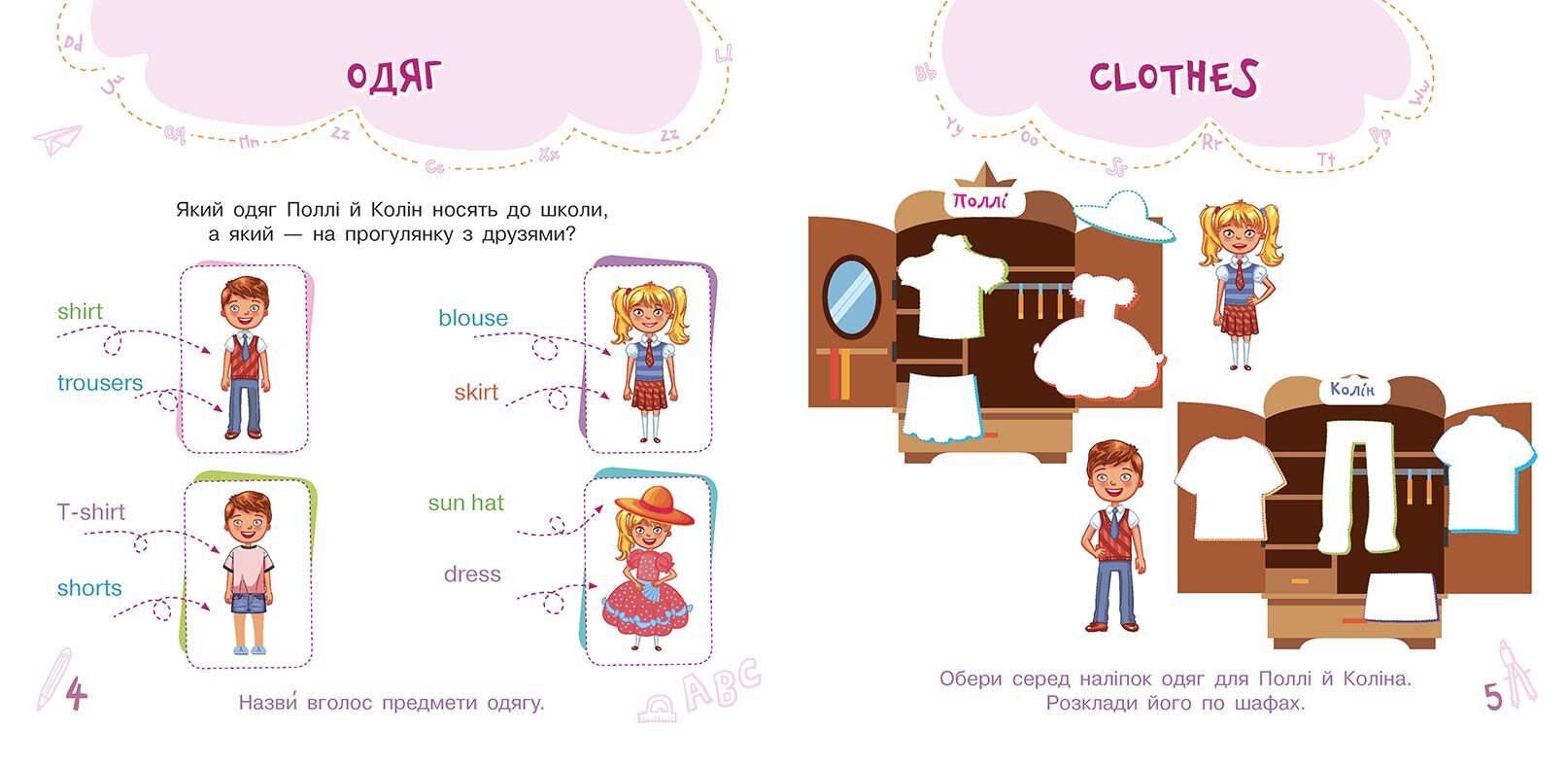 Діти можуть наклеювати наліпки з відповідними словами на сторінки книги, що допомагає закріплювати нові слова та вивчати англійську мову у вигляді гри. Такий інтерактивний підхід сприяє кращому запам'ятовуванню та засвоєнню матеріалу.