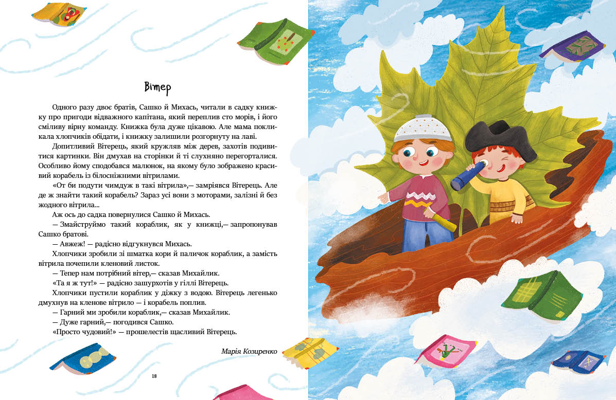 Читаємо перед сном Ранок. У книзі зібрані щонайдобріші історії, які стануть у пригоді саме для вечірнього читання. Казки короткі, кожну можна прочитати лише за п’ять хвилин. Це допоможе малюку дослухати історію до кінця й не втратити увагу. Можна читати по одній казці щовечора — тоді книги вам вистачить на цілий місяць! А коли закінчите, починайте спочатку.