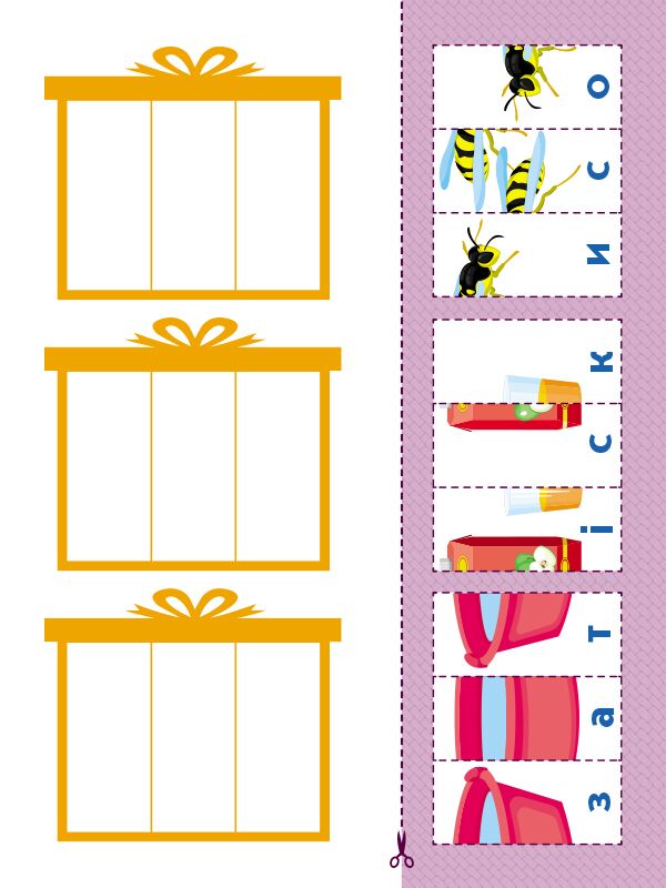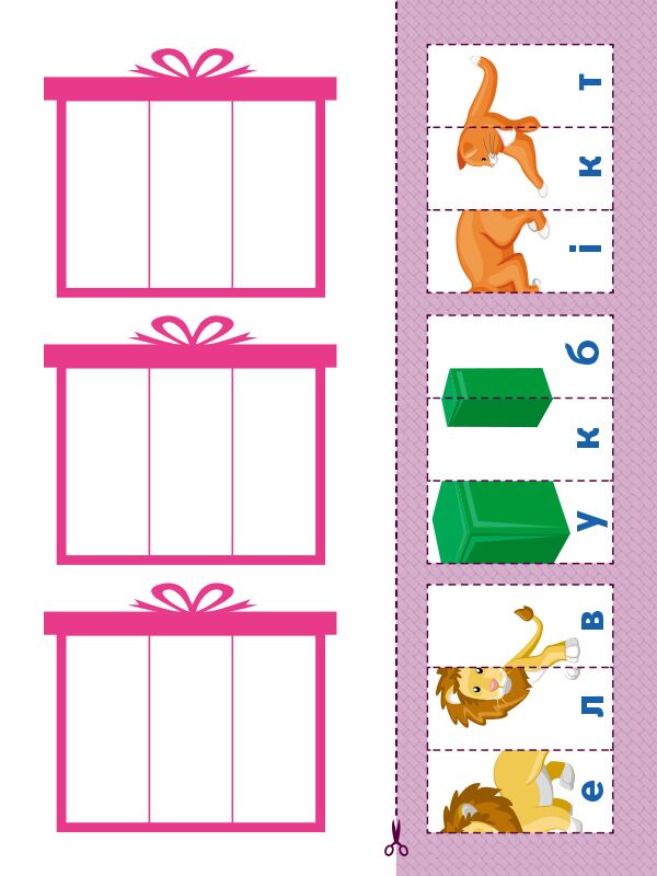 Вивчати букви, збирати, складати слова, а потім і читати їх стане надзвичайно цікаво! У серії "Вирізалка" робити це потрібно через аплікацію. Суперефективна техніка навчання через вирізання неодмінно допоможе вдосконалити навички й не дозволить занудьгувати.
