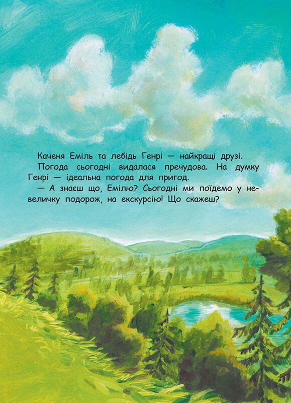 Дзень-дзелень! Еміль вчиться їздити на велосипеді Гюнтер Якобз Ранок. Каченя Еміль не вміє кататися на велосипеді. А після першої спроби і першого падіння навіть слухати не хоче про цей транспорт. Але що ж робити, коли на дворі чудова погода і дуже кортить вирушити в подорож із найкращим другом? На щастя, лебідь Генрі знає, як заспокоїти плаксиве каченя та допомогти йому подолати свій страх. А заразом він навчить цього маленьких читачів і читачок та їхніх батьків.