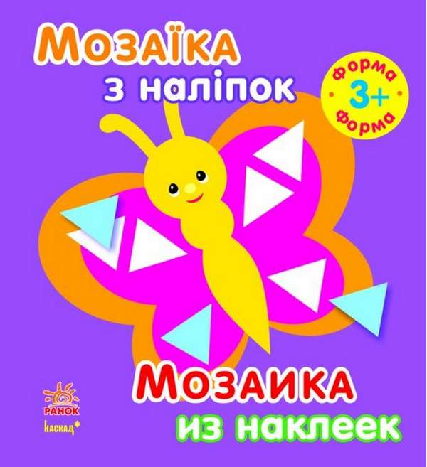 Мозаїка з наліпок Для дітей від 3 років Форма Ранок. У кожному виданні кольорові наліпки мають різні форми: кружечка, трикутника, квадрата та інші. З ними малюк легко опанує кольори, форми, лічбу.
