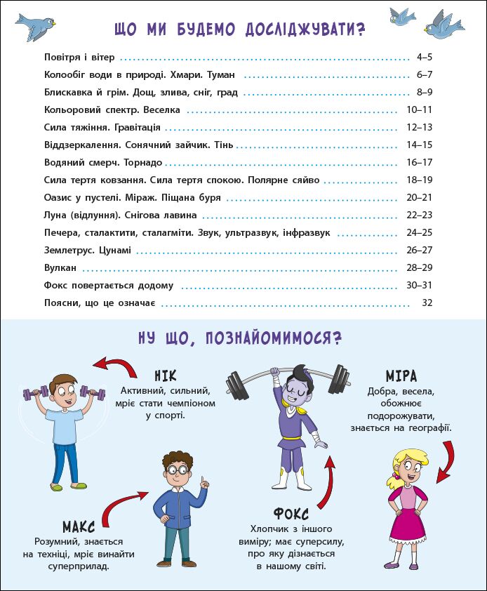 Мікс енциклопедії та коміксу, де весело та креативно пояснюється: - що таке гравітація та сила тертя? - чому виникає смерч чи цунамі? - як утворюється веселка і багато-багато іншого. І це ще не все: • яскраві сучасні ілюстрації; • прості та зрозумілі пояснення; • мінімум тексту та максимум схем у картинках.