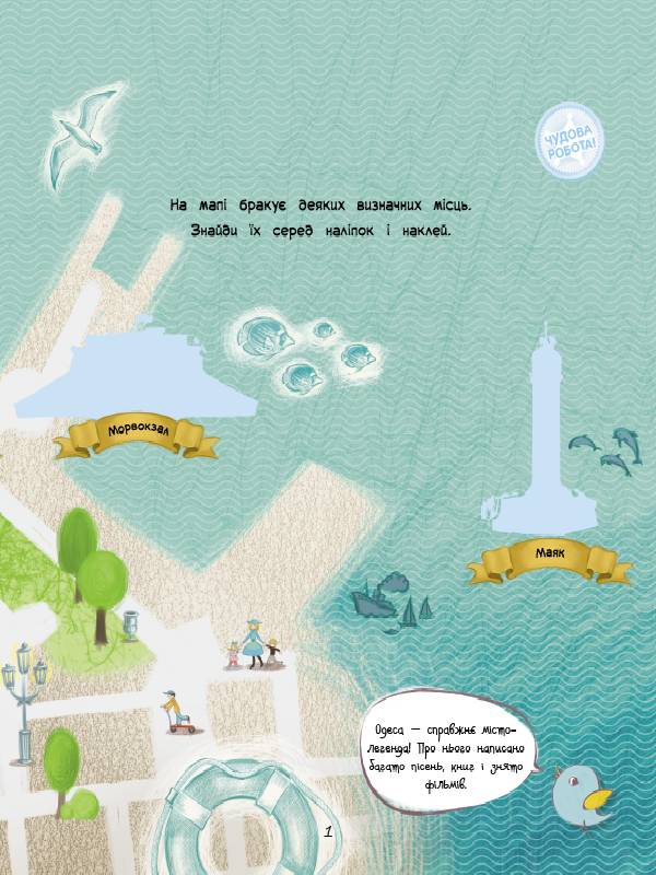 Книга з висічкою-ручкою та наліпками для малюків. У серії зібрано ігрові завдання йфакти про визначні місця українських міст: Києва, Харкова, Одеси і Львова.