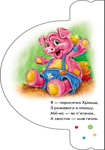 Серія „Моя перша книжка” У будь-якій книжці цієї серії ваша дитина знайде 10 веселих персонажів: звірят, машинок чи навіть побутових приладів. Кожний герой розповість малюкові про себе веселий віршик. А чарівні сходинки допоможуть легко відшукати сторінку з улюбленим персонажем. Придумала ці книжки чудовий дитячий поет Ірина Сонечко.