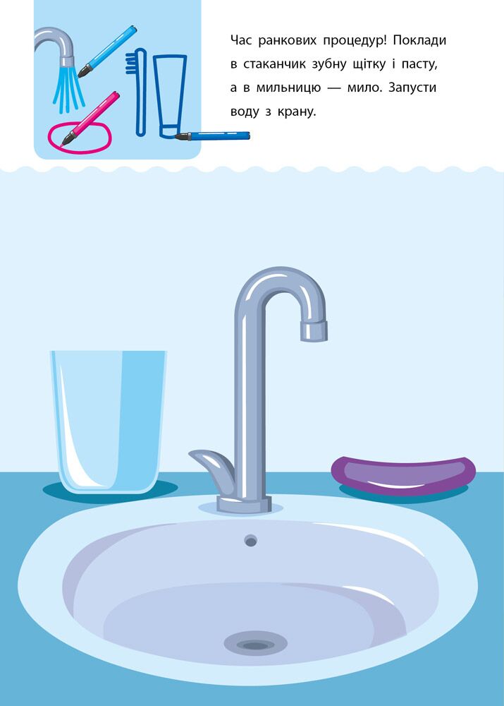 Креативні навчалочки побудовані на малюнках. Доповнюючи їх, дитина відпрацьовуватиме необхідні для свого віку навички дрібної моторики. Кожна сторінка зосереджена на одній із тем: сенсорному розвитку, математиці, логіці, предметам у просторі, довкіллі.