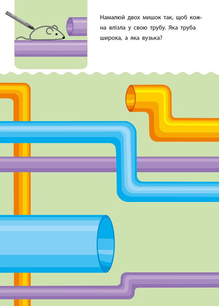 Креативні навчалочки побудовані на малюнках. Доповнюючи їх, дитина відпрацьовуватиме необхідні для свого віку навички дрібної моторики. Кожна сторінка зосереджена на одній із тем: сенсорному розвитку, математиці, логіці, предметам у просторі, довкіллі.