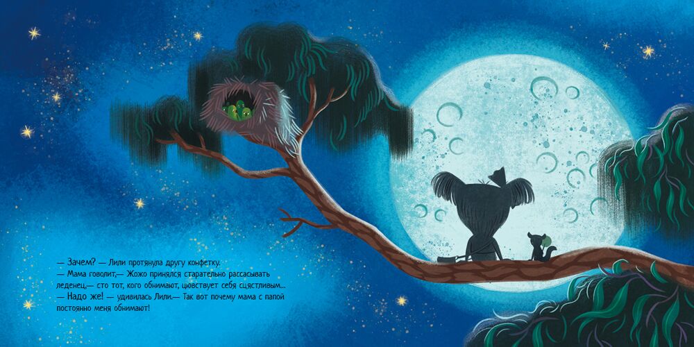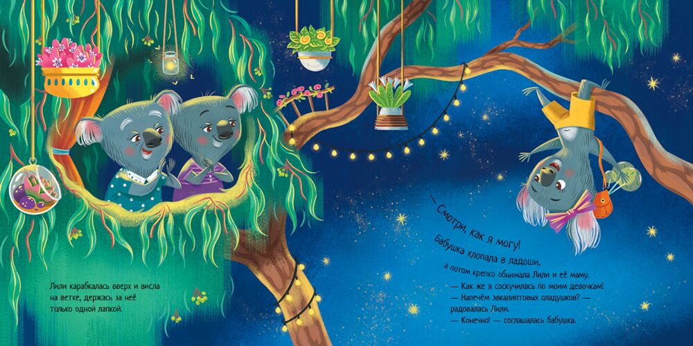 Це історія про маленьку коалу Лілі, яка любить бабусю, сонце та льодяники. Так затишно слухати казки, вмостившись на колінах у бабусі, і так шкода, що це буває лише раз на тиждень! Якось під час прогулянки зі своїм другом Лілі дізналася, що той, кого обіймають, почувається щасливим. У маленької коали защеміло серце: «А як же бабуся? Адже вона живе зовсім сама». Лілі дуже хоче, щоб бабуся була щаслива, тому потрібно розв'язати важливе питання: поки внучки не буде поруч, хто ж обійматиме бабусю?