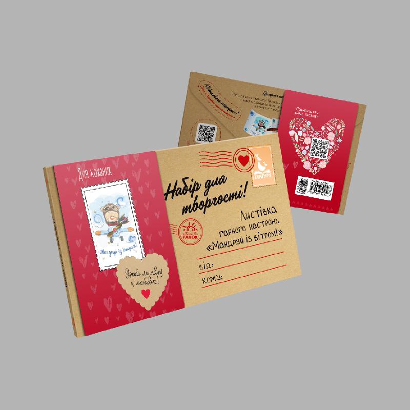 Подаруй свою творчість! Прикрась листівку чудовими матеріалами з набору, допиши адресне привітання! Зроби привітання із секретом з іншого боку листівки!