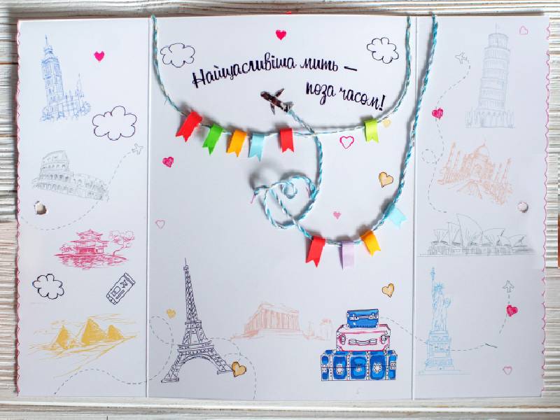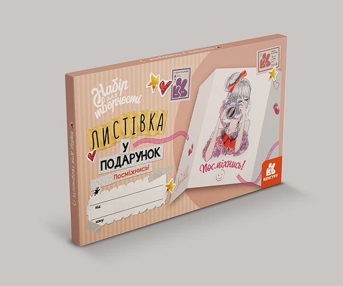 Подаруй свою творчість! Прикрась листівку чудовими матеріалами з набору, допиши адресне привітання! Зроби привітання із секретом з іншого боку листівки!