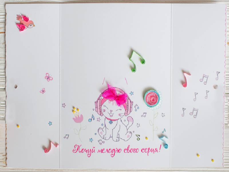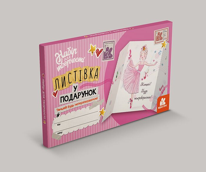 Подаруй свою творчість! Прикрась листівку чудовими матеріалами з набору, допиши адресне привітання! Зроби привітання із секретом з іншого боку листівки!