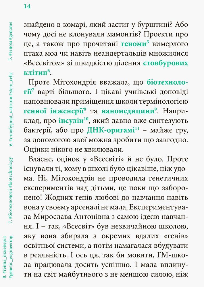 Повість «Літо довжиною в ДНК» познайомить школярів із історією та останніми досягненнями в галузі біотехнологій. Книга містить безліч цікавого тексту та цілком зрозумілі малюнки та схеми і може легко замінити нудний урок з біології.