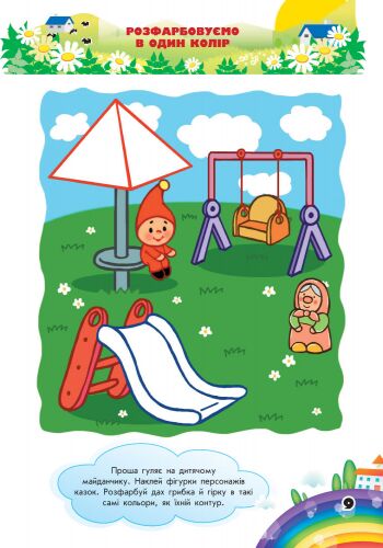 Видання допоможе дитині навчитися охайно проводити лінії, розфарбовувати малюнки, штрихувати, обводити предмети, малювати. Завдання подані в ігровій формі. На кожній сторінці зошита малюка зустрічає гном Проша — провідний персонаж усіх зошитів серії. Зошит містить дві сторінки наклейок. Дитина не лише відповідатиме на запитання й малюватиме, а й наклеюватиме яскраві картинки. Видання сприяє розвитку дрібної моторики рук, логічного мислення, активного словникового запасу. Зошит призначений для дітей віком від трьох років.
