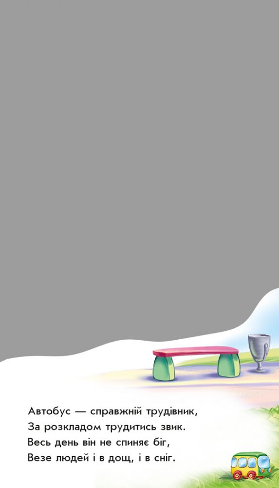 Вірші у цій ошатній книжці оригінальної форми ― пустотливі та веселі, малюнки ― яскраві та емоційні, а велике панно на обороті можна довго розглядати! Неможливо пройти повз цієї книжечки!