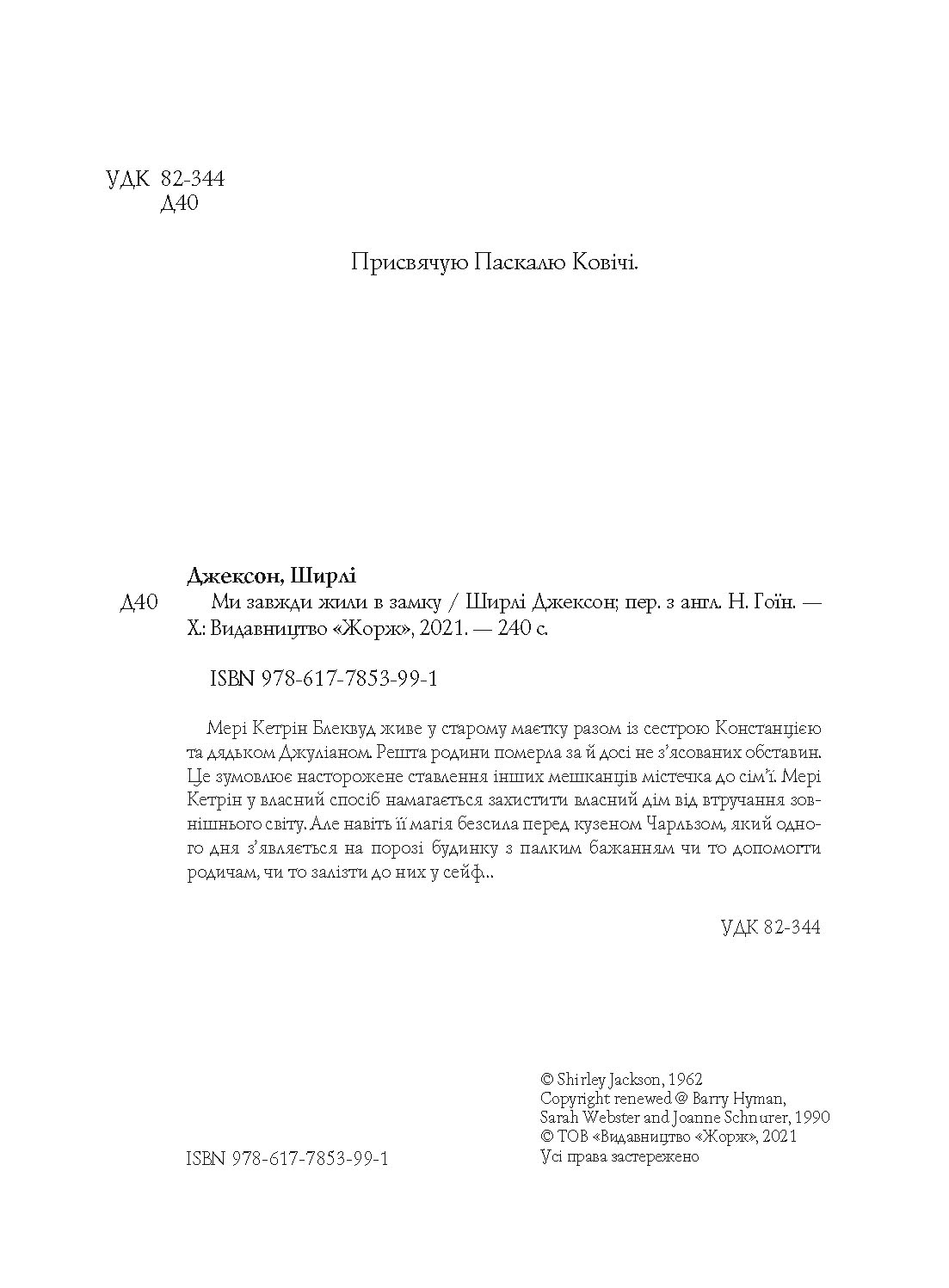 Сестри Блеквуд живуть усамітнено в старому родинному маєтку. Констанс уже шість років не виходить з будинку, хоча її й виправдали у справі вбивства власних батьків, а Мерікат лише раз на тиждень вибирається в містечко на закупи, уникаючи зустрічей із місцевими мешканцями. Ізольовані від світу, вони живуть у власному вимірі, аж доки у їхньому маєтку не з’являється кузин Чарлі… Мерікат має зробити все можливе, щоб позбутися чужинця і захистити сестру та свій дім.