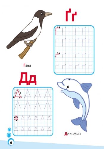 Кожна сторінка містить зразок букви для наслідування, де дитина може практикуватися у написанні букв, дотримуючись правильного порядку та написання. Цей метод допомагає дітям розвивати моторику руки, а також ознайомлює їх із засадами правильного написання букв.