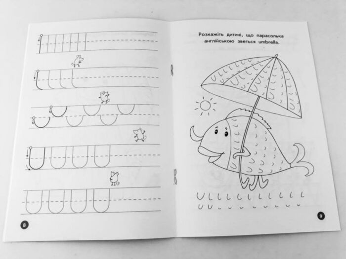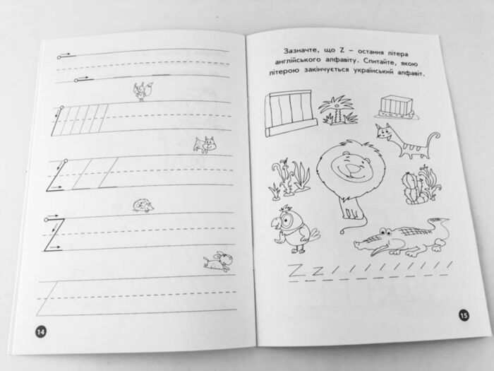 - Містить багато вправ для вивчення англійських літер та їх правильного написання