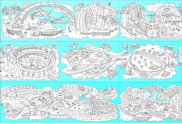 На небі Довжеле-е-е-езна подорож 4,5 метри розмальовки Ранок. Розмальовки серії «Довжеле-е-е-езна подорож» завдовжки 4,5 метри! Незвична форма сприяє тому, щоб з головою зануритися у творчий процес: від розфарбовування химерних будівель та дивакуватих мешканців не доведеться відволікатися на перегортання сторінок. Ретельно промальовані, деталізовані пейзажі фантастичних мегаполісів не тільки пробуджують уяву, а й гарантують те, що розмальовки вистачить надовго, навіть, якщо розфарбовувати її безперервно.