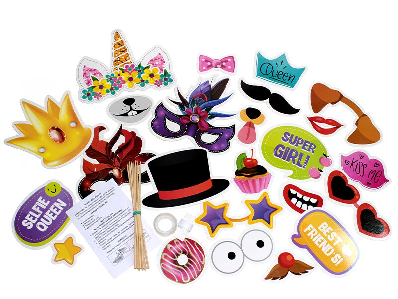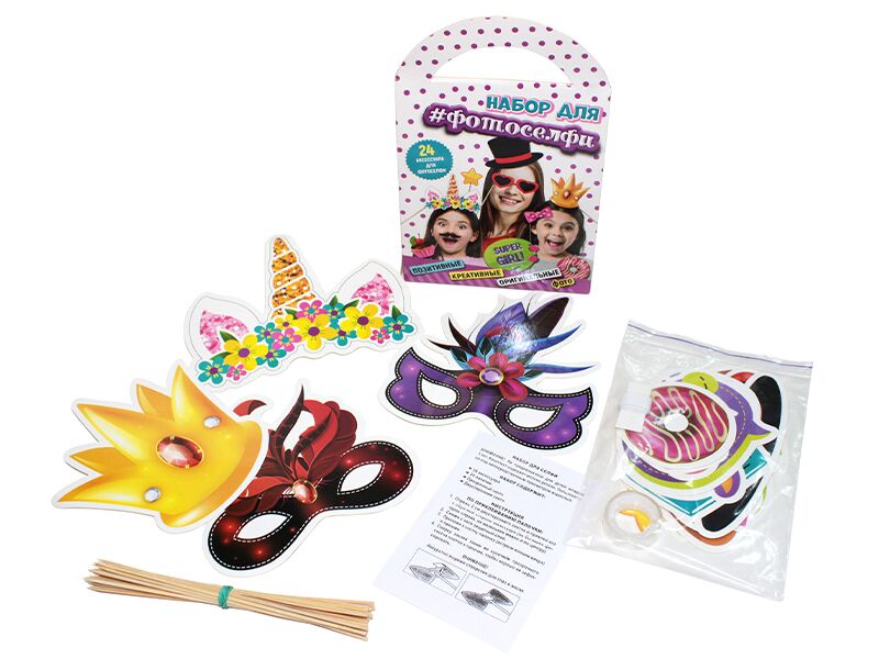 Формат:25,5х16х5,5см Набір з 24 аксесуарами для фотосесії! Беремо з собою на тематичні вечірки та будь-які свята. Цей набір прекрасний варіант подарунка для створення незабутніх фото і позитивної атмосфери. Пакування у вигляді сумочки, в ній зручно зберігати готові аксесуари для фотоселфі.